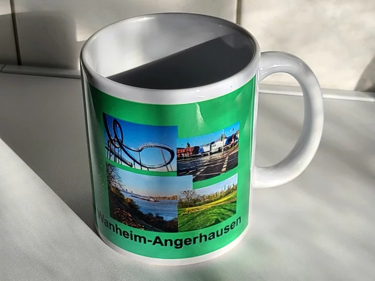 Ein Kaffeebecher mit "Wanheim-Aktuell / Wanheim-Ticker" und sehr ähnlichem Layout.