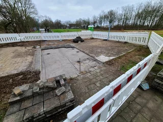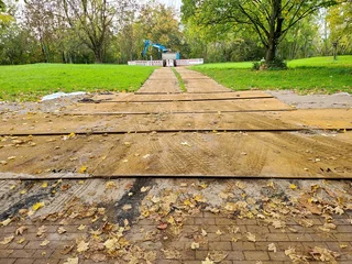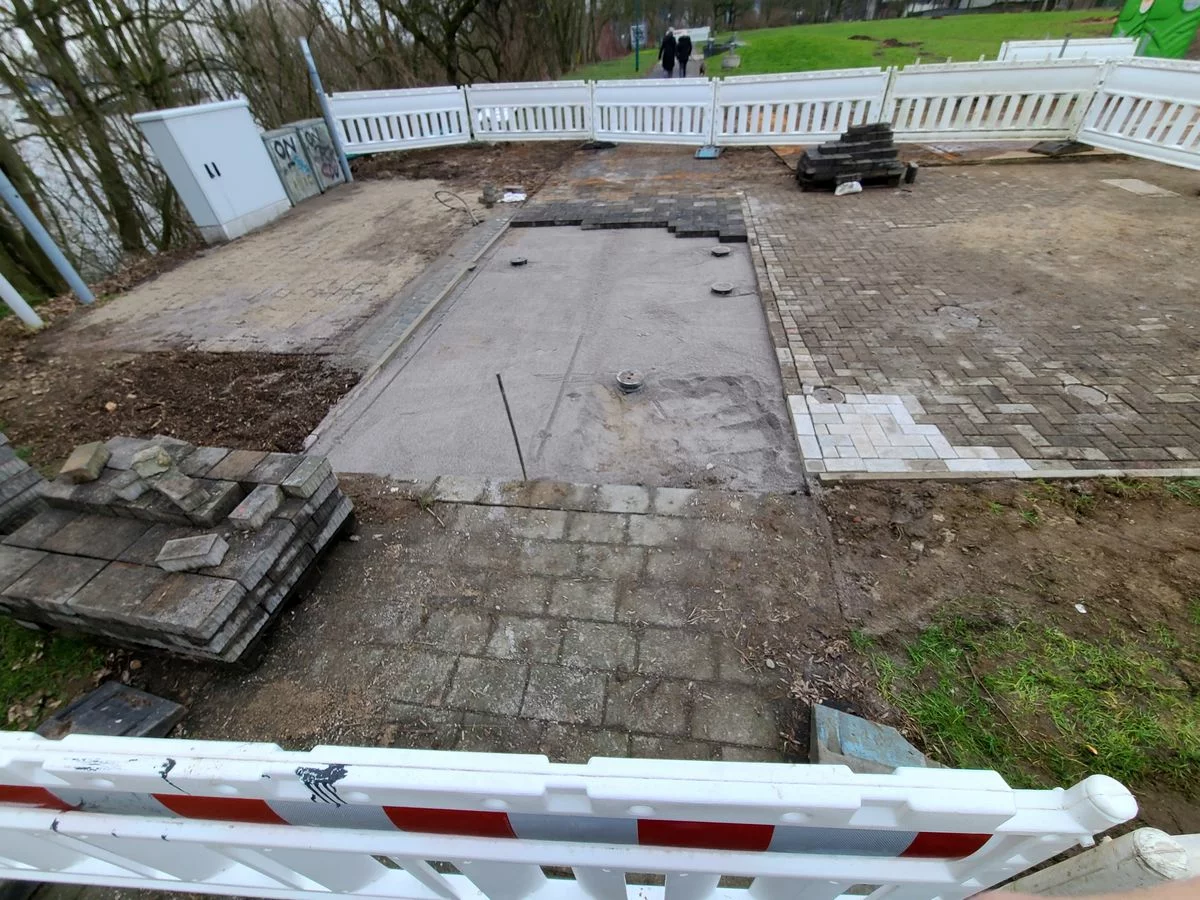 Wiederinstandsetzung des Weges und der Grünanlagen steht