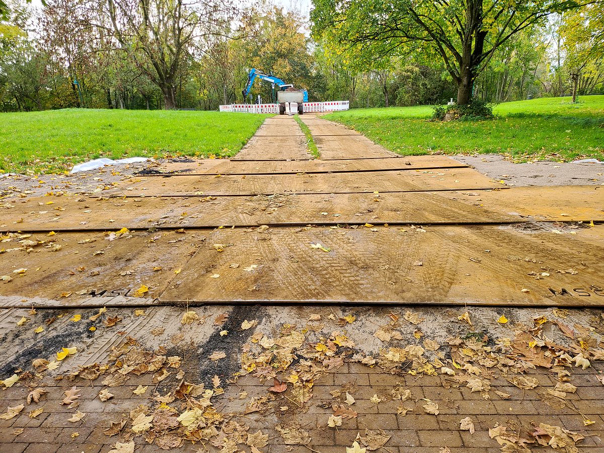 gesperrt und die Wiese bis zur Straße abgedeckt..